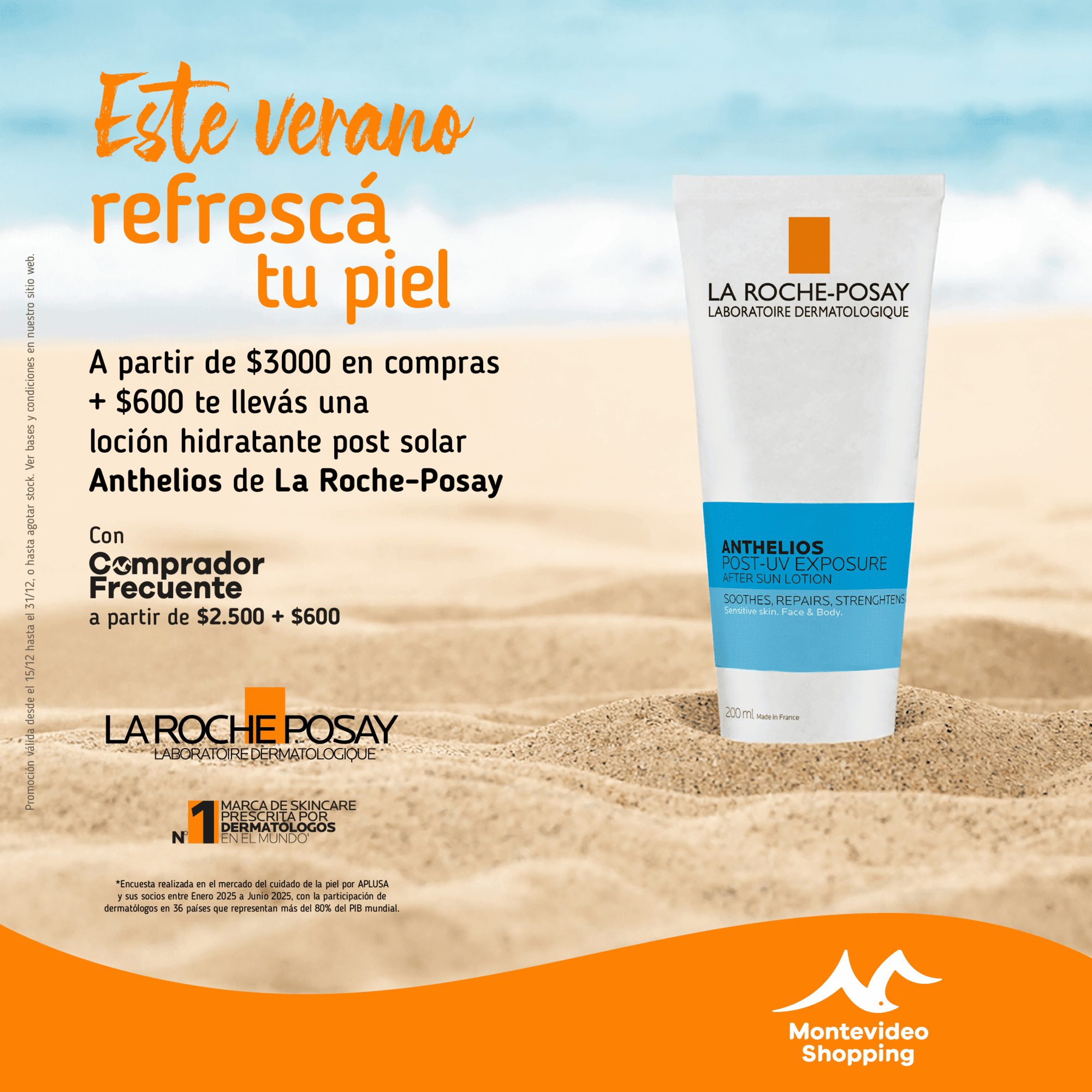 Podrán participar en la promoción todas aquellas personas que realicen sus compras en cualquiera de los locales comerciales de Montevideo Shopping en el período comprendido entre el 12 de diciembre y el 31 de diciembre de 2025 o hasta el momento en que se agoten los productos de la promoción consistentes en 2.000 GEL HIDRATANTE POST SOLAR POSTHELIOS DE La Roche-Posay.