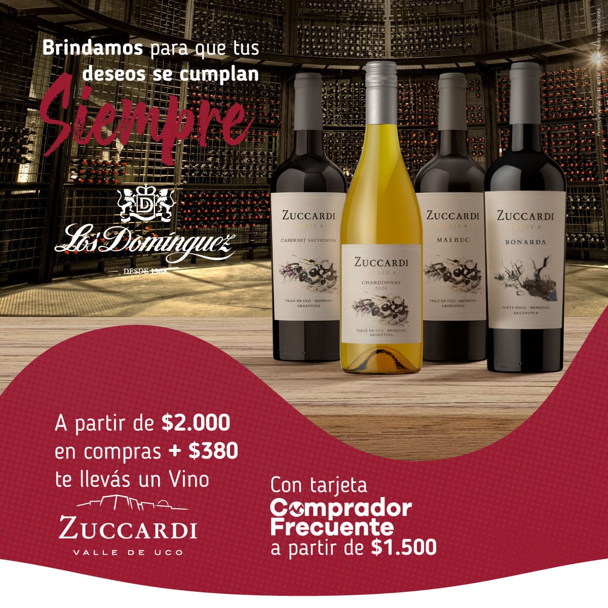 A partir de $2.000 en compras + $380 te llevas un vino Zuccardi.