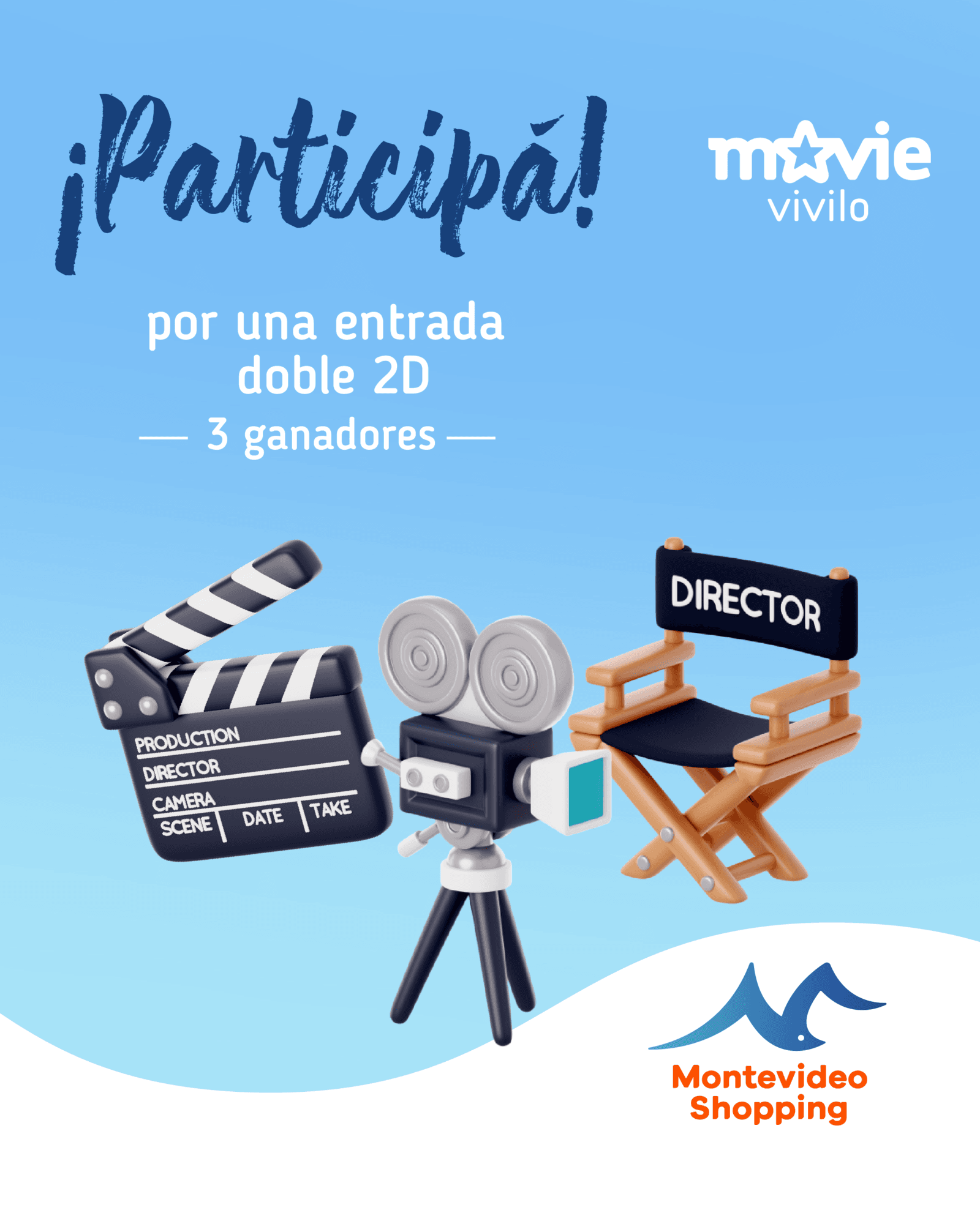 3 personas ganadoras de 1 entrada doble para funciones 2D en el local Movie de Montevideo Shopping.