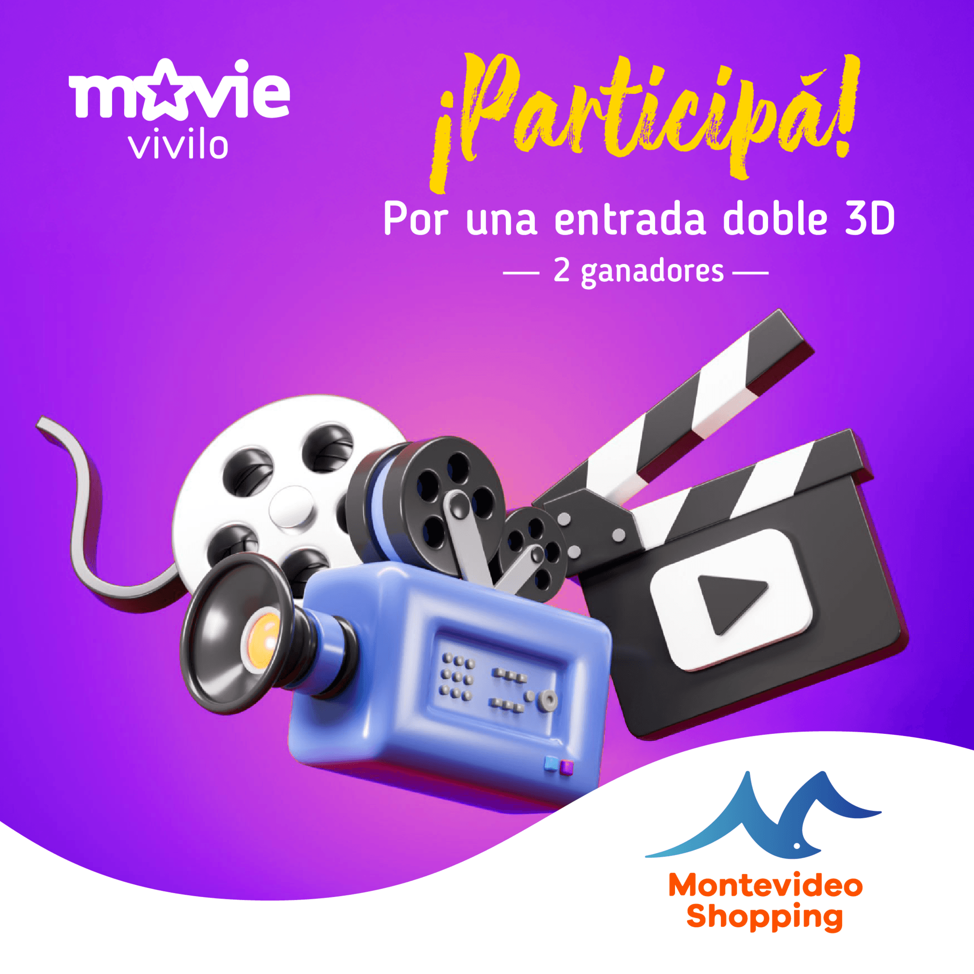 2 personas ganadoras de 1 entrada doble para funciones 3D en el local Movie de Montevideo Shopping.