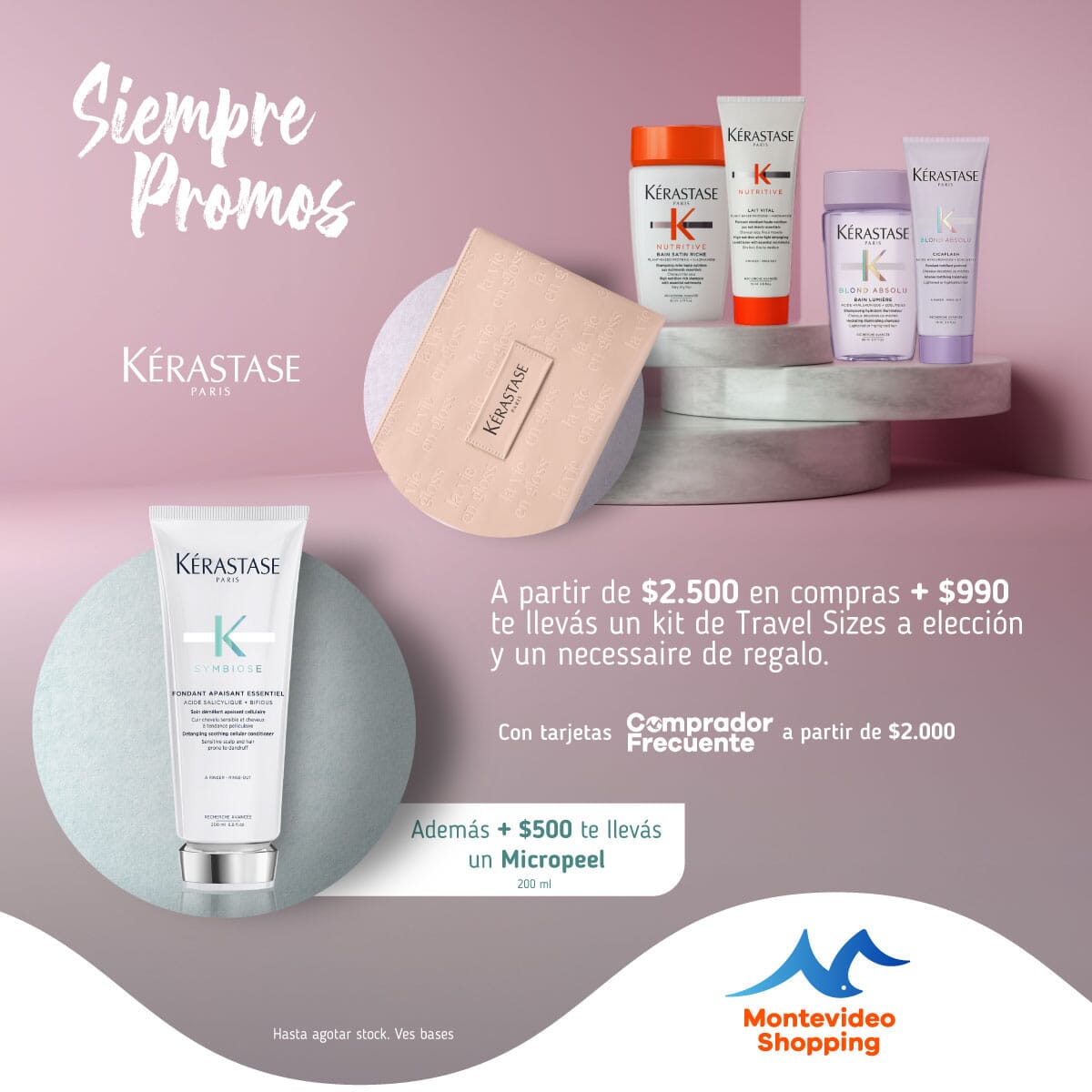 A partir de $U 2.500 en compras (válido para acumulación de tickets y facturas) + $990 te llevas un kit travel sizes Kerastase a elección + necessaire de regalo.